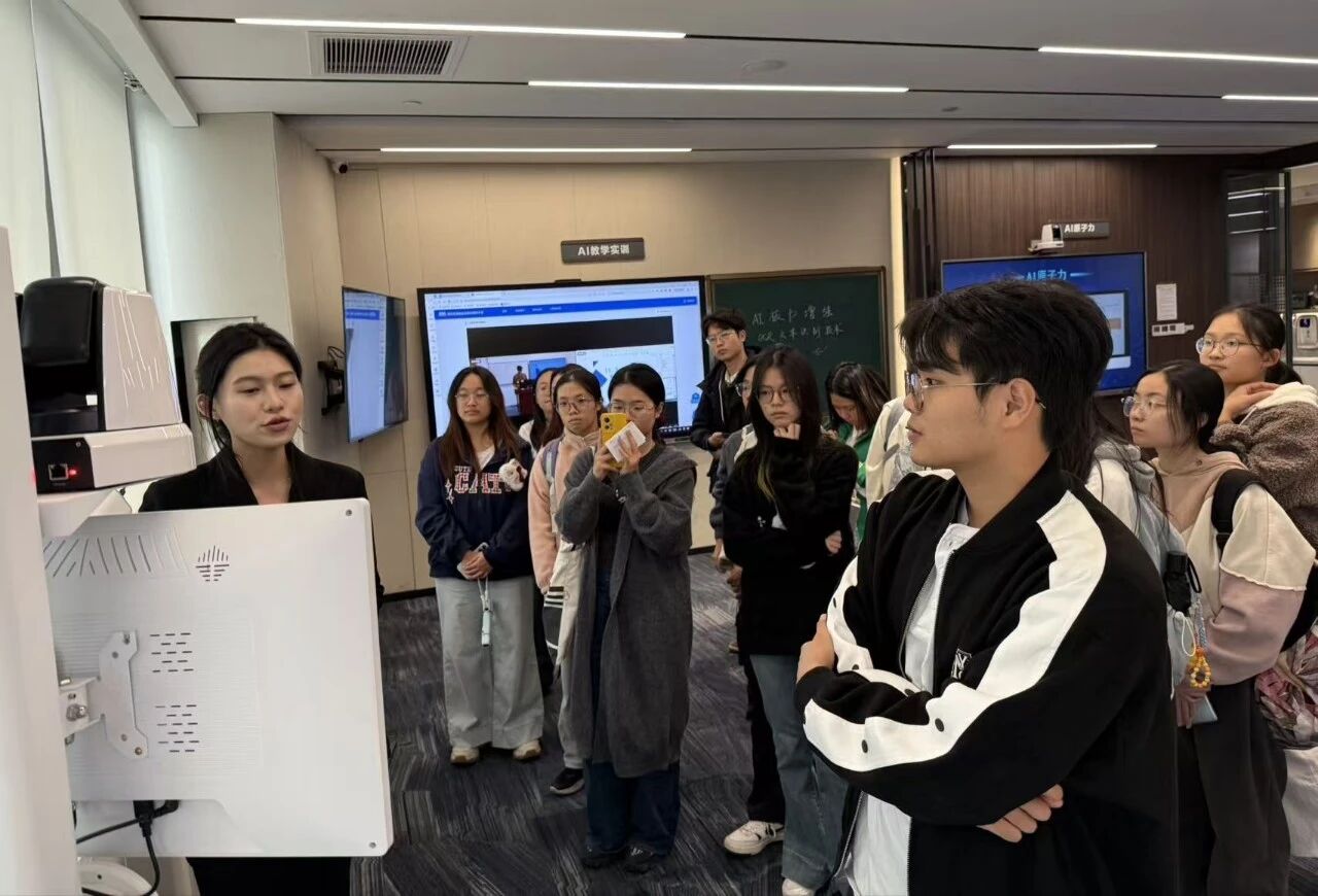 随后,同学们先后参观了奥威亚产品体验中心和智慧教育展示区,近距离感受智慧教育设备的研发过程与应用效果。从高清录播系统到AI辅助教学工具,从校园智慧管理平台到区域教育云解决方案,一系列兼具创新性与实用性的产品让同学们深受启发。大家纷纷结合自身关注的领域与工作人员交流探讨,现场学习氛围浓厚。